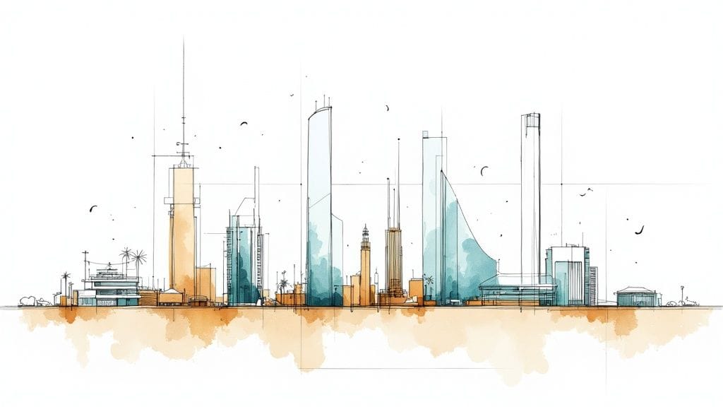 For developers and investors, this platform provides unmatched peace of mind. By cross-referencing your shortlist of architectural companies in the UAE with this official database, you safeguard your project from regulatory hurdles and ensure you are collaborating with a credible, compliant partner. While it won't display a firm's creative portfolio, it confirms its foundational eligibility to bring that portfolio to life within Dubai's stringent building codes. For a deeper understanding of how these consultancies are classified and licensed, you can explore detailed guides on the subject. Find out more about what it means to be a registered architectural consultancy firm in Dubai.