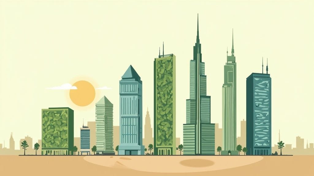 This shift is a huge part of the region's development goals. The entire GCC is seeing incredible growth in green building, all backed by increasingly strict standards. As of August 2023, over 5,300 projects in the MENA region had earned LEED certification. You only have to look at local examples like Masdar City or Dubai's own LEED Platinum-certified mosque to see this commitment in action.